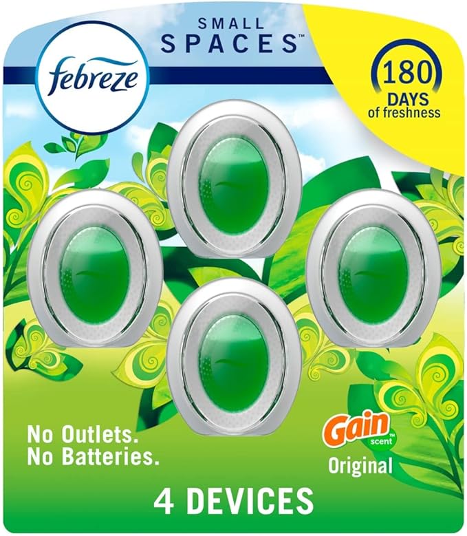 Febreze Small Spaces Air Freshener, Odor-Fighting, Plug In Alternative, Air Fresheners for Home and Bathroom and Kitchen, Closet Air Fresheners, Gain Original Scent, 4 Count