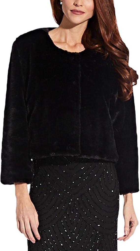Adrianna Papell Women's 3/4 Sleeve Fur Jacket
