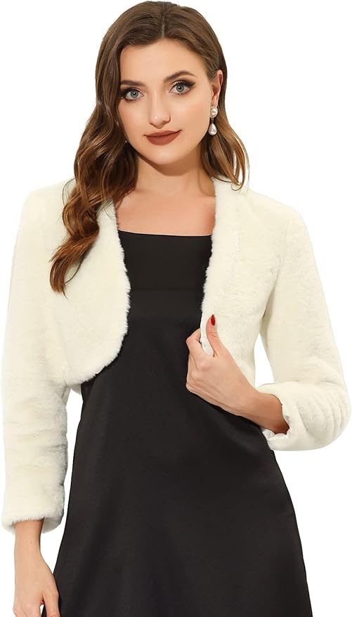 Allegra K Bolero Shrug for Women's Evening Wedding Cropped Faux Fur Jacket