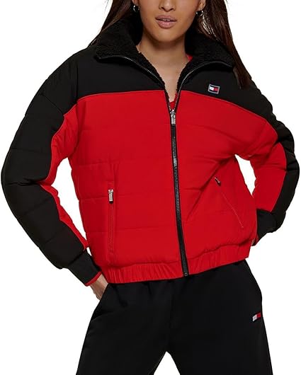 Tommy Hilfiger Sport Womens Faux Fur Reversible Puffer Jacket Red S