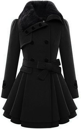 Zeagoo Women's Fashion Faux Fur Lapel Double-Breasted Thick Wool Trench Coat Winter Warm Jacket S-2XL