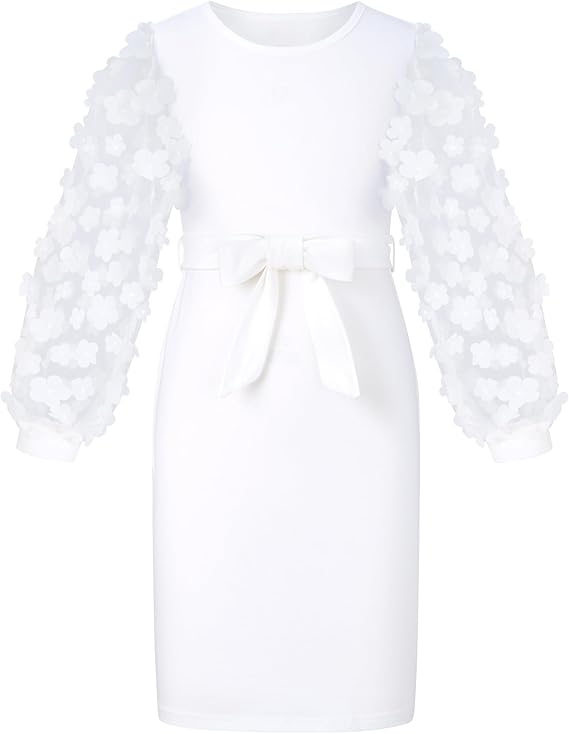 ALISISTER Girls Puff Dress Formal Mesh Sheer Long Sleeve Dresses 7-14 Years