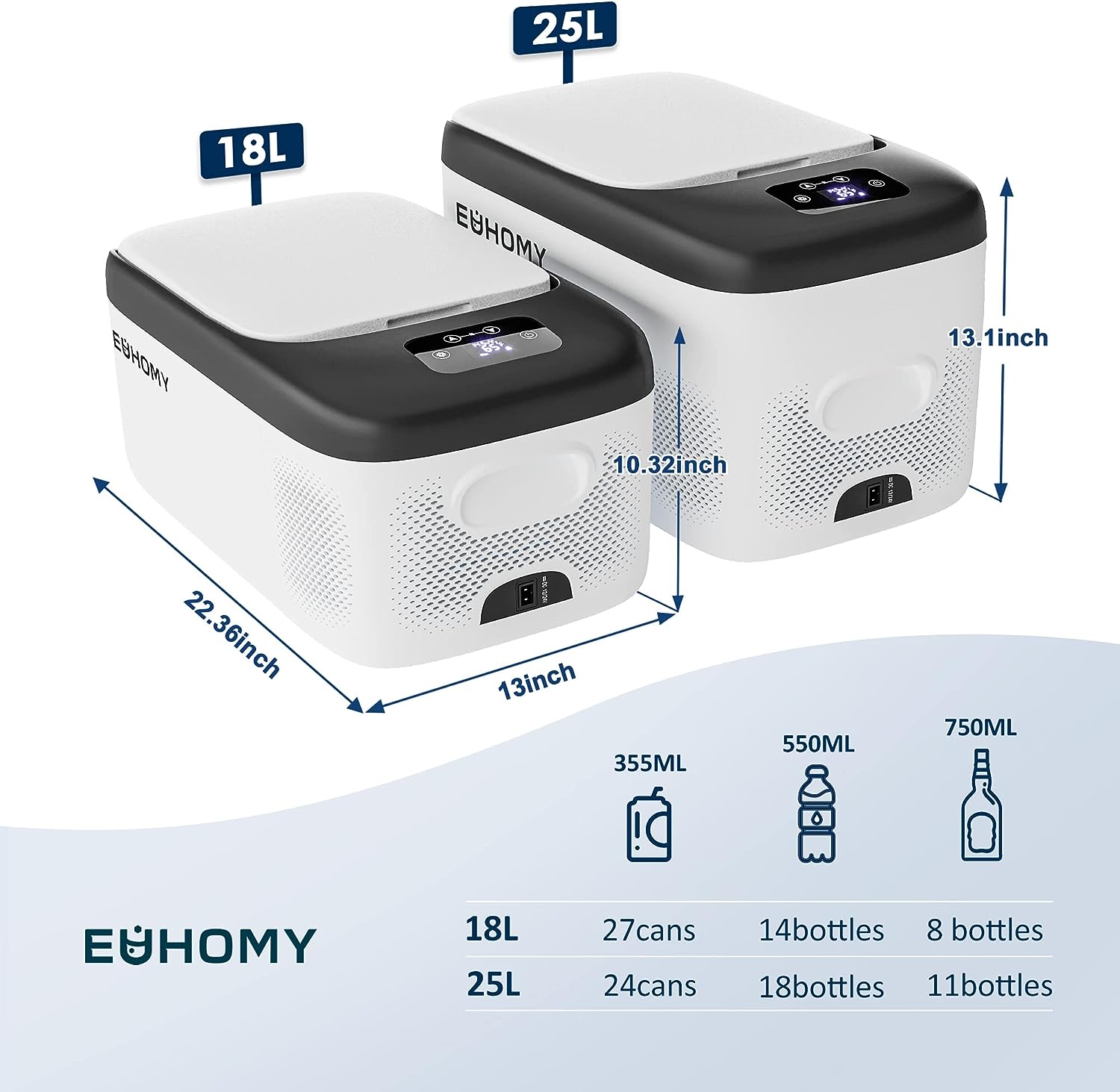 • SMART BATTERY PROTECTION&HOME/CAR DUAL-USE - Euhomy car fridge 12v is equipped with 110/240V AC and 12/24V DC adapters, which can be used at home or in the car. The RV refrigerator provides three (low, medium, and high) battery protection functions at different levels. This design can prevent the car power supply from being overloaded or short-circuited, so you don’t have to worry about running out of car power when using the 12 volt fridge. All this is for you to enjoy the journey.
