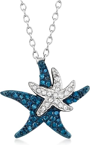 Ross-Simons 0.20 ct. t.w. Blue and White Diamond Starfish Pendant Necklace in Sterling Silver
