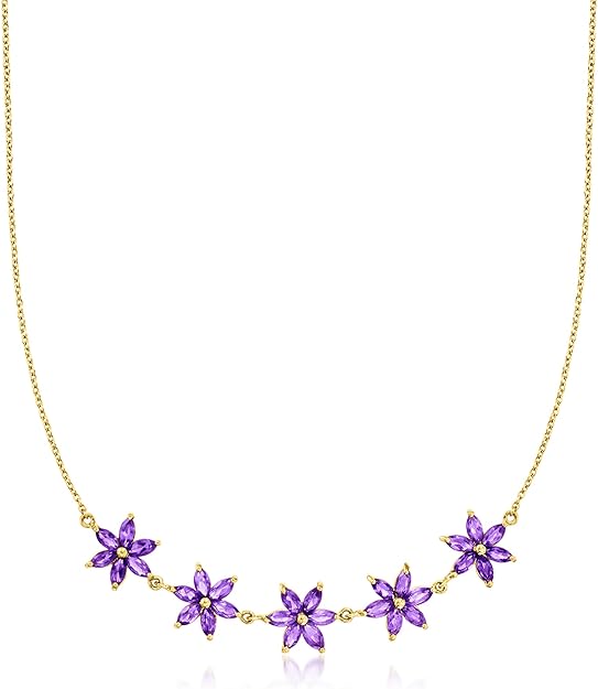Ross-Simons 4.00 ct. t.w. Amethyst Flower Necklace in 18kt Gold Over Sterling. 18 inches