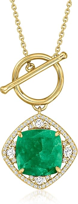 Ross-Simons 6.50 Carat Emerald and .70 ct. t.w. White Topaz Toggle Necklace in 18kt Gold Over Sterling. 18 inches
