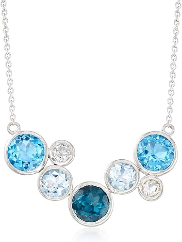 Ross-Simons 9.60 ct. t.w. Tonal Blue and White Topaz Bezel Necklace in Sterling Silver