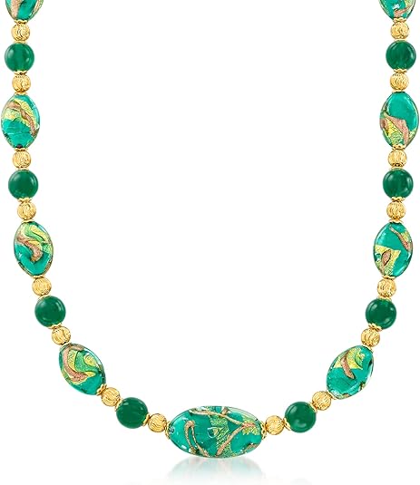 Ross-Simons Italian Multicolored Murano Glass Bead Necklace in 18kt Gold Over Sterling