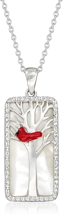 Ross-Simons Mother-Of-Pearl and .30 ct. t.w. White Topaz Cardinal Pendant Necklace With Multicolored Enamel in Sterling Silver