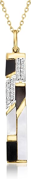 Ross-Simons Mother-Of Pearl and Onyx Pendant Necklace With .10 ct. t.w. White Topaz in 18kt Yellow Gold Over Sterling. 18 inches