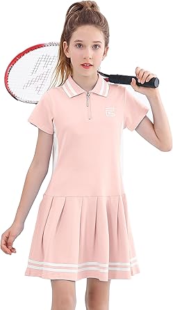 EXARUS Girls Tennis Dress Golf Clothes Short Sleeve Outfit Polo Zipper Sports Pleated Dresses with Shorts Pockets