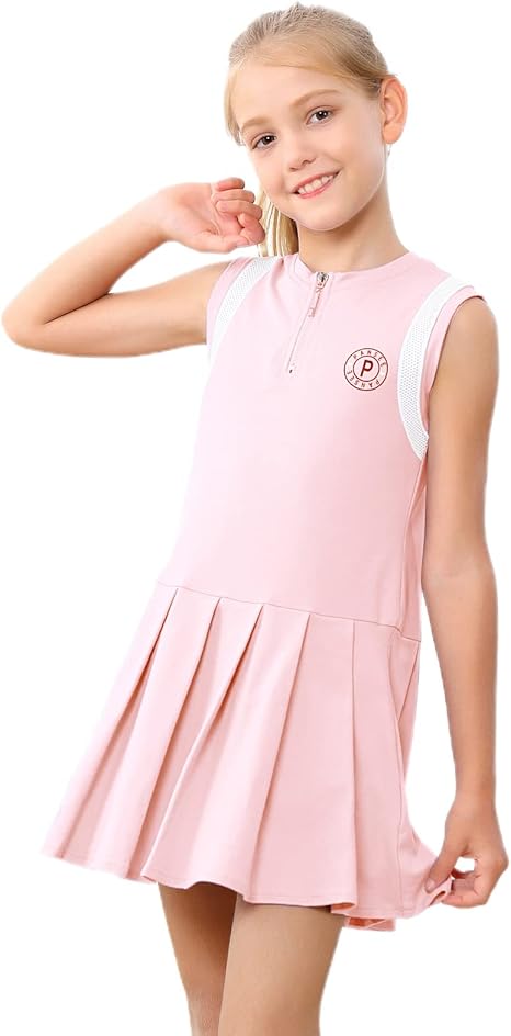 EXARUS Girls Tennis Dress with Shorts Golf Sleeveless Outfit School Sports Pleated Dresses with Pockets