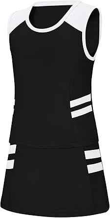 EXARUS Girls Tennis Outfit Golf Dress Kids Sleeveless Tank Top and Skirt Skorts with Shorts Pockets 6-12Y