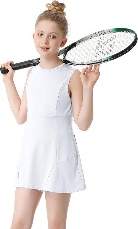 Girls Tennis Golf Pleated Dress Outfit Sleeveless Workout Athletic Dresses Tank Golf with Shorts Pockets