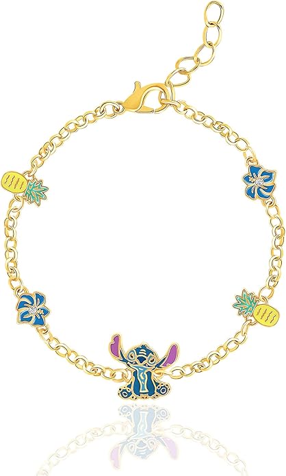 Disney Womens Stitch Bracelet with Station Pendants 6.5" + 1" - Flash Plated Stitch Jewelry Officially Licensed