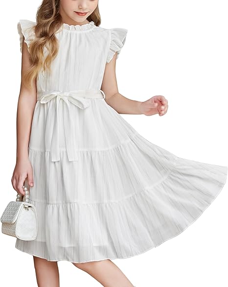Arshiner Tween Girls Summer Dress Formal Ruffle Sleeve A Line Casual Elegant Dresses with Belt