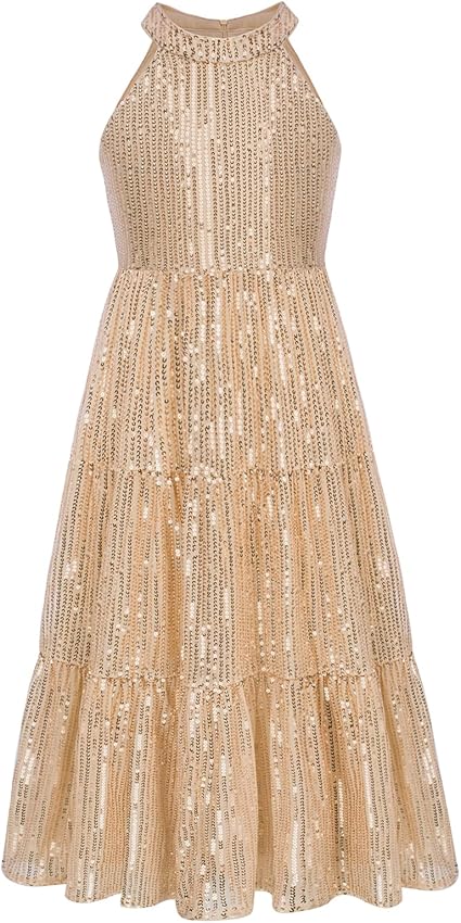 GRACE KARIN 2024 Girls Sequin Dress Elegant Cute Girls Party Maxi Dress for 5-14Y