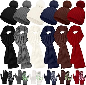 JaGely 18pcs Kids Winter Hat Gloves Scarf Set Warm Kids Knit Beanie with Pom Kid Gloves for Boys and Girls Scarf Toddler Gift