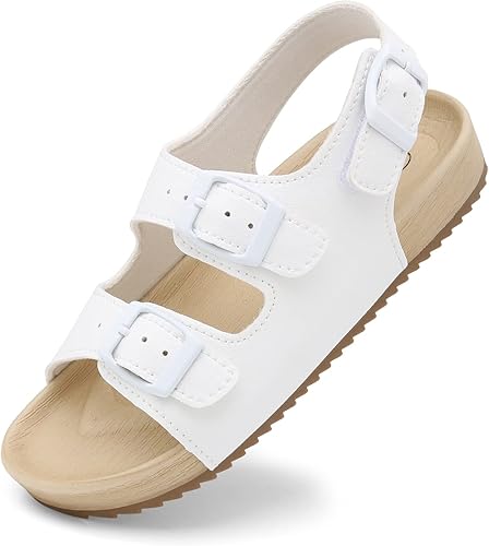 Girls Boys Sandal Adjustable Double Buckle Casual Flat Open Toe Lightweight Summer Shoes Hook Loop Sandal for Toddler Little Big Kid