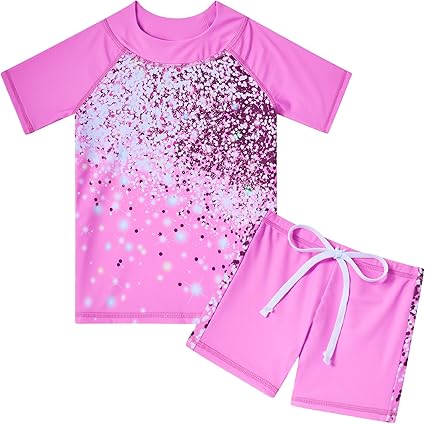 Cutemile 4-10 Years Girls 2 Piece Swimsuit UPF 50+ Rash Guard Siwmwear with Short