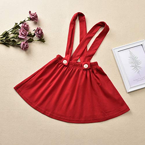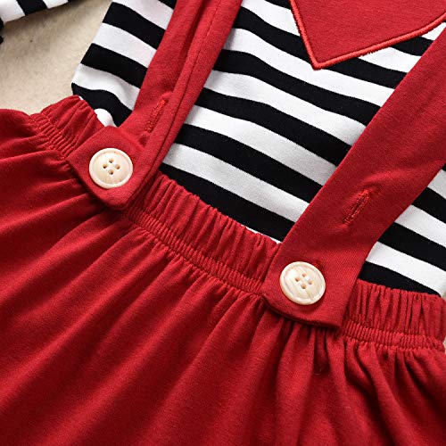 Aalizzwell Toddler Baby Girls Valentines Day Outfits Suspender Skirt Striped Plaid Love Heart Clothes Maroon, 5T