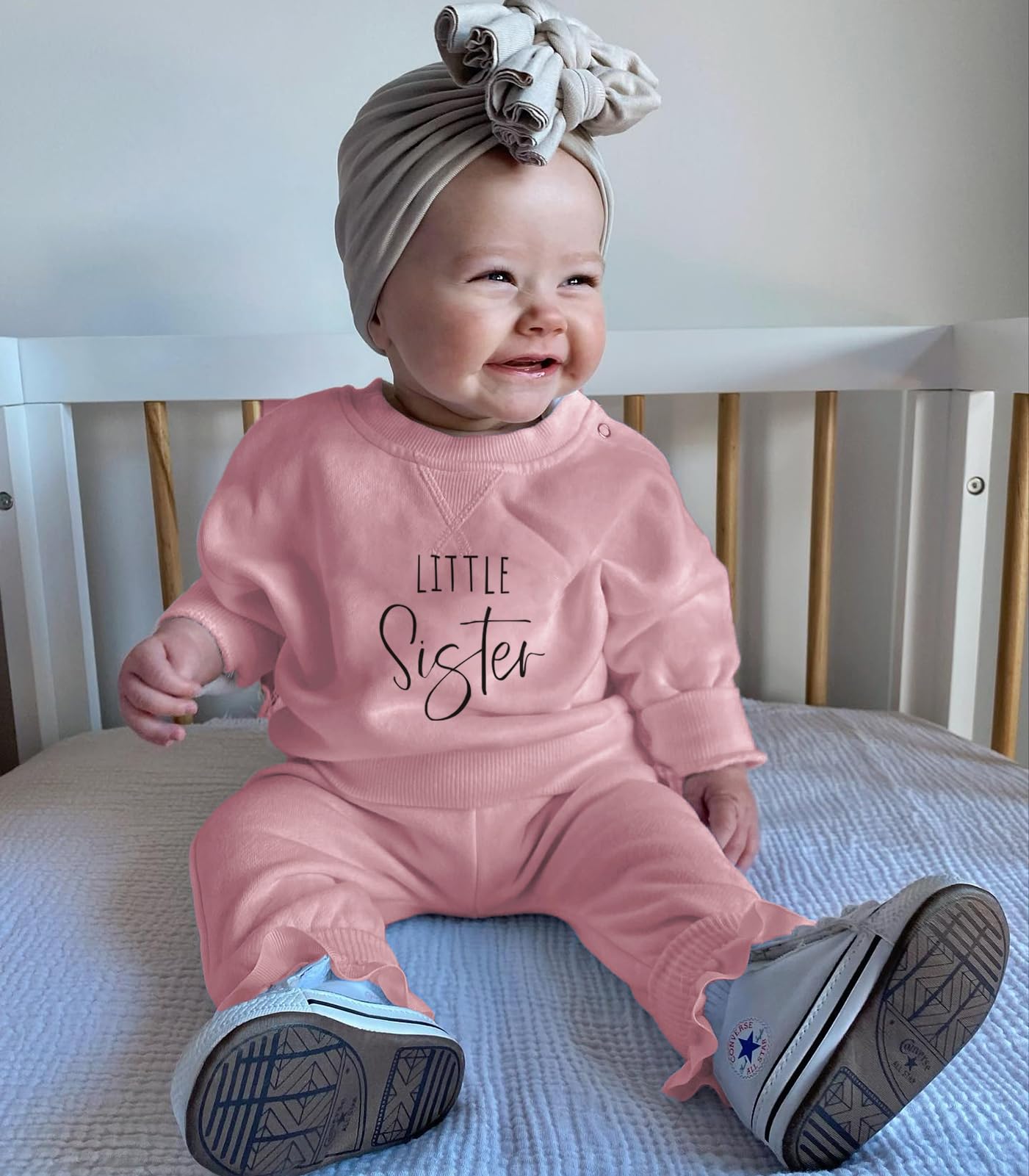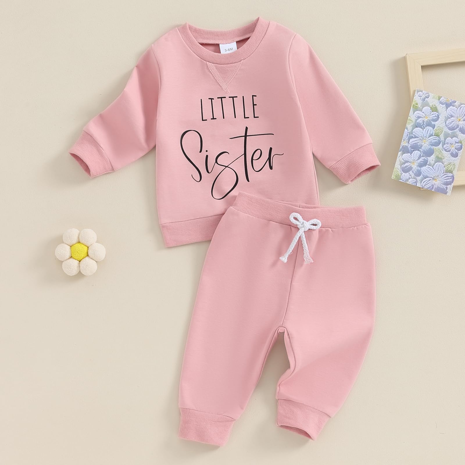 • Soft Fabric:---The baby girls 2-piece outfit is made of premium 65%cotton,35%polyester material. Soft, breathable and skin-friendly, ''Little Sister'' letters print on sweaters, playwear / homewear for little baby sister clothes. infant little baby clothes set girl cute clothes