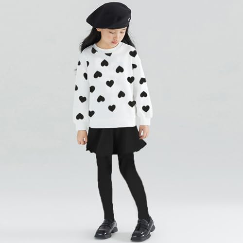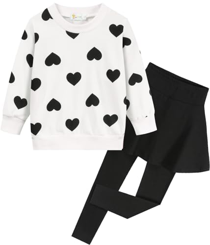 Tkria Little Girls 2 Pieces Outfit Heart Print Sweatshirts Top + Long Pant Pantskirt School Outfits Kids Valentine Clothing Sets Fall Winter Playwear Baby Clothes Sets Size 9-10