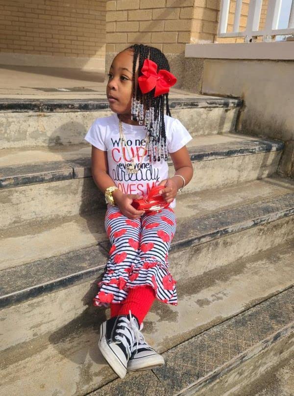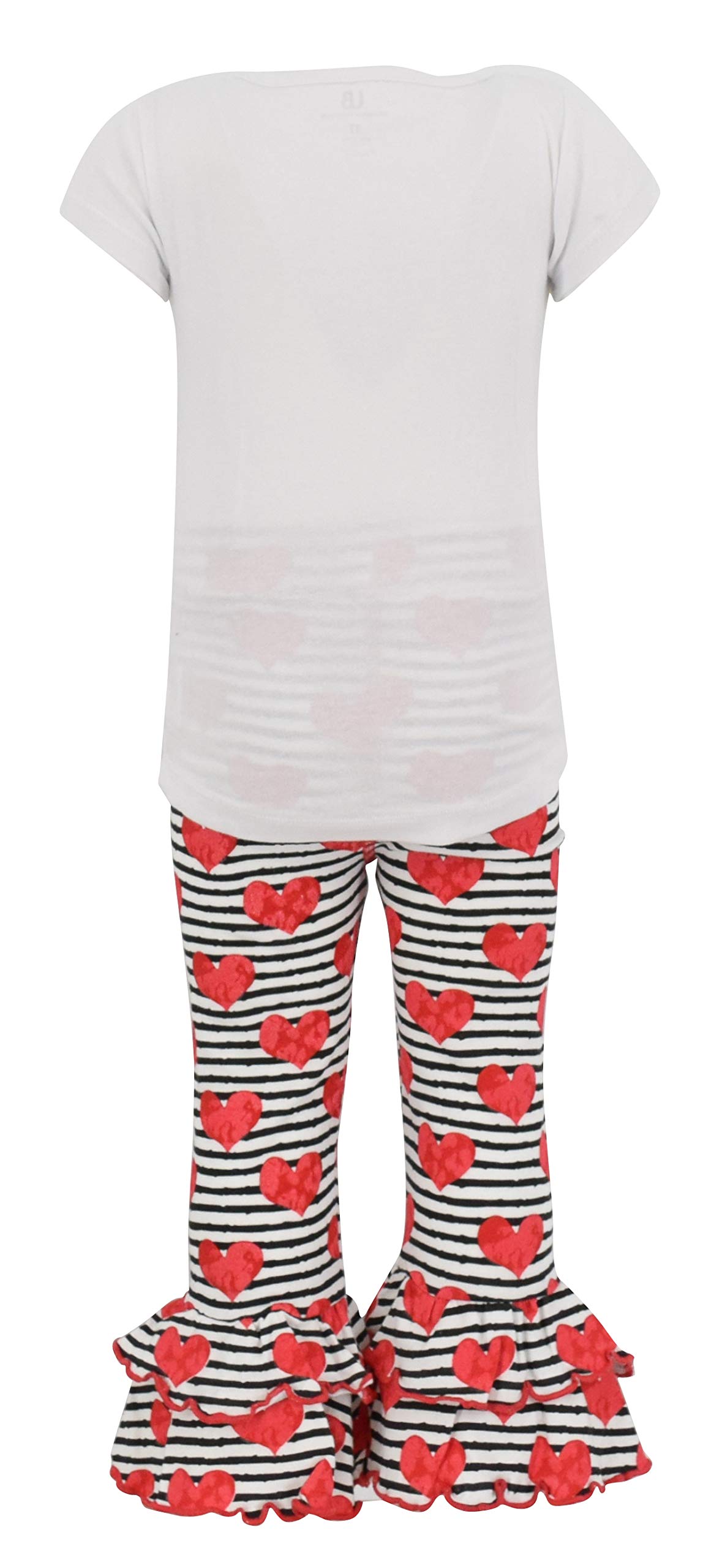 • WHAT KIDS LOVE: Comfort and Cupid! Red colors and hearts bring out the Valentine's Day theme and the adorable applique makes this outfit loads of fun. The soft Egyptian cotton will make this your little girl's favorite!