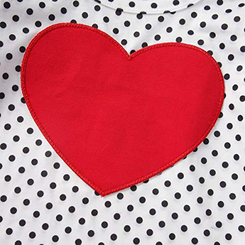Xfglck Toddler Baby Girl Valentine's Day Clothes Outfit Long Sleeve Dot Heart Long Sleeve Shirt Blouse +Suspender Skirts Set (Red, 5-6 T)