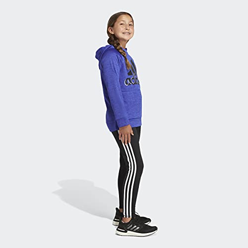 Details: This girls' hoodie has got it all. Cozy fleece keeps her comfortable and a roomy front pocket lets her stash her favorite things. The adidas Badge of Sport stands out on the chest with a cute detail that shows off her adidas love.