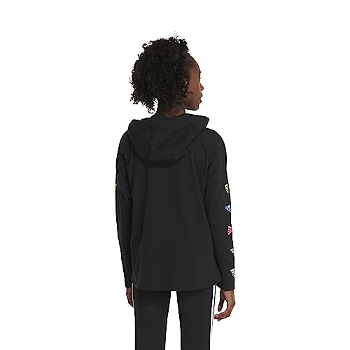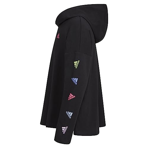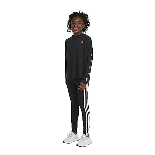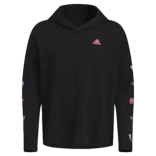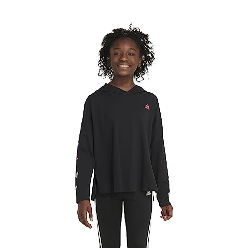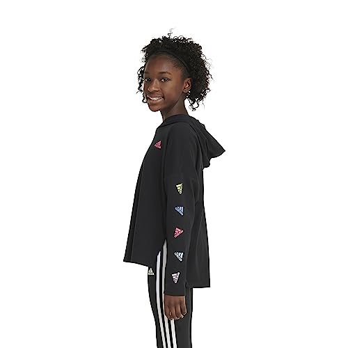 adidas Girls' Long Sleeve Hooded Graphic Tee, Black with Multicolor 2