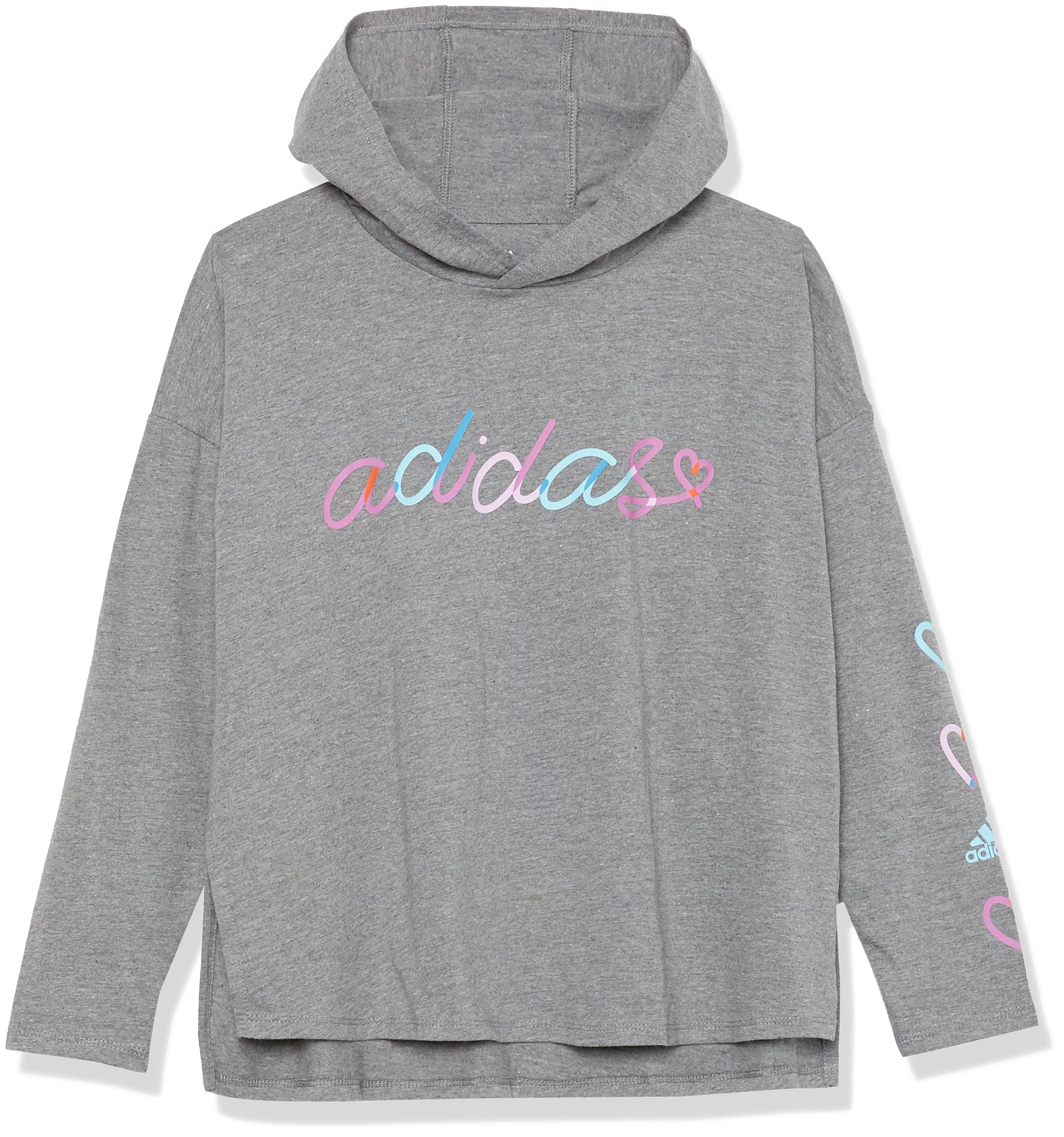 adidas Girls' Long Sleeve Hooded Graphic Tee, Charcoal Grey Heather, 6