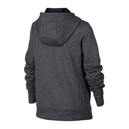 Nike Big Girls' Swoosh Thermal Pullover Sweatshirt Hoodie (Black Heather/Black, Small)