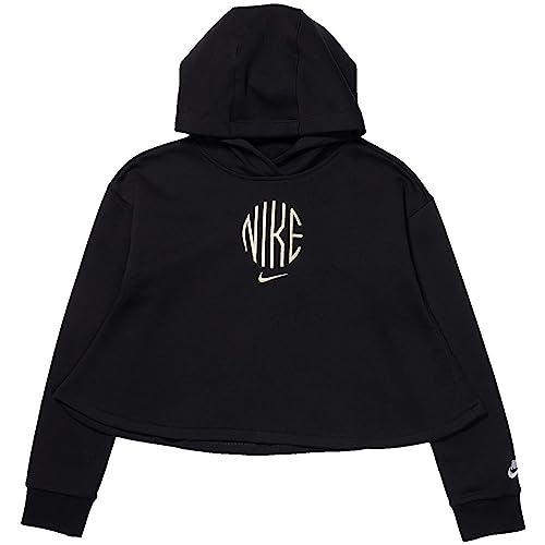 Nike Girl's NSW Graphic Fleece Hoodie (Little Kids/Big Kids) Black/White LG (14-16 Big Kid)