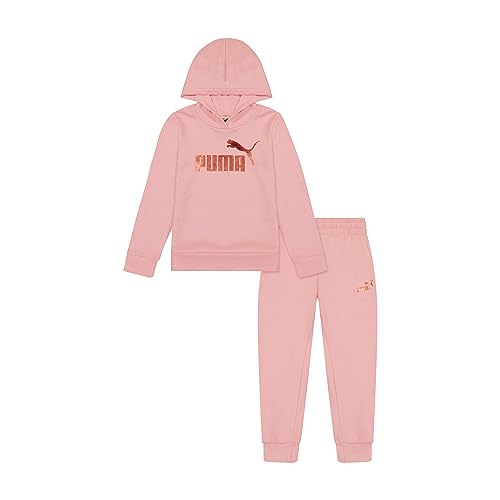 PUMA Girls' Logo Fleece Hoodie & Jogger Set, Lotus, 4