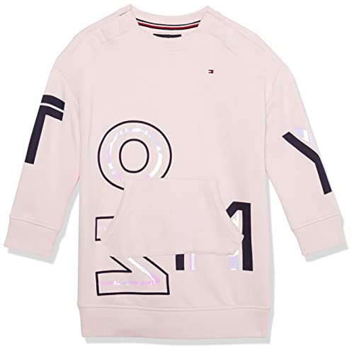 Tommy Hilfiger Girls' Adaptive Sweatshirt Dress with Velcro Brand Closure at Shoulders, Light Pink, MD