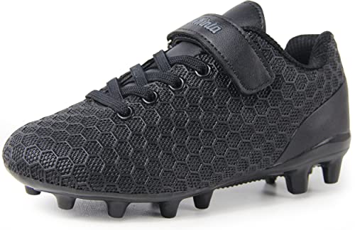 BomKinta Kid's FG Soccer Cleats Athletic Outdoor Soccer Shoes Black Size 5 M US Big Kid
