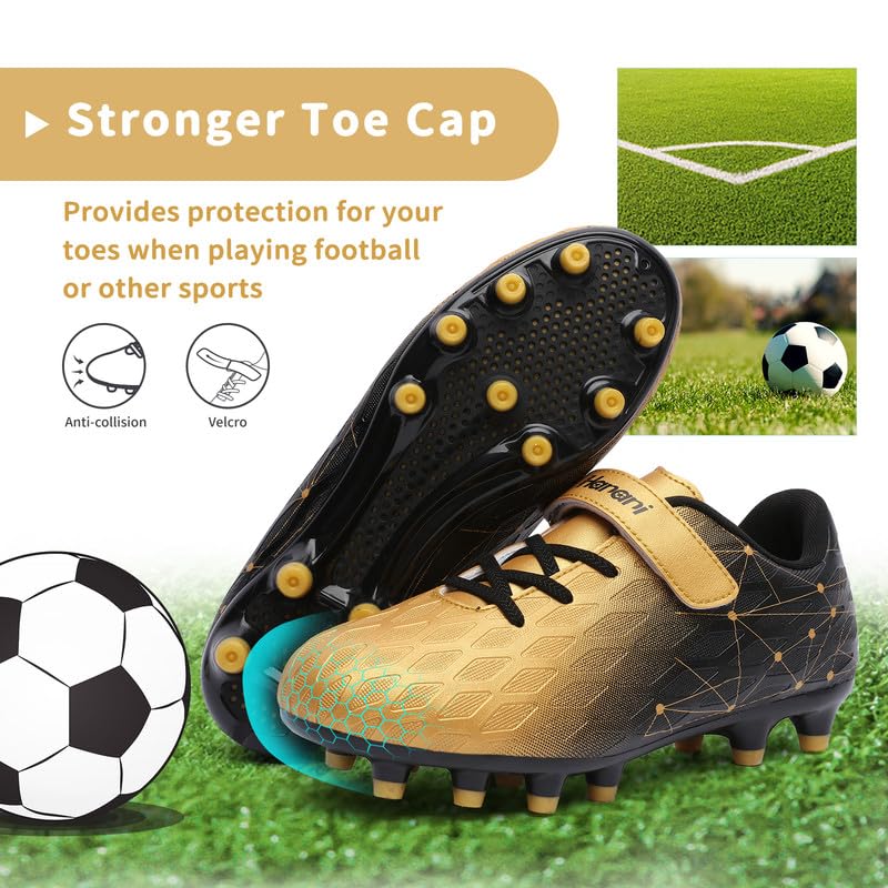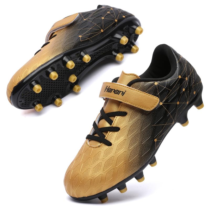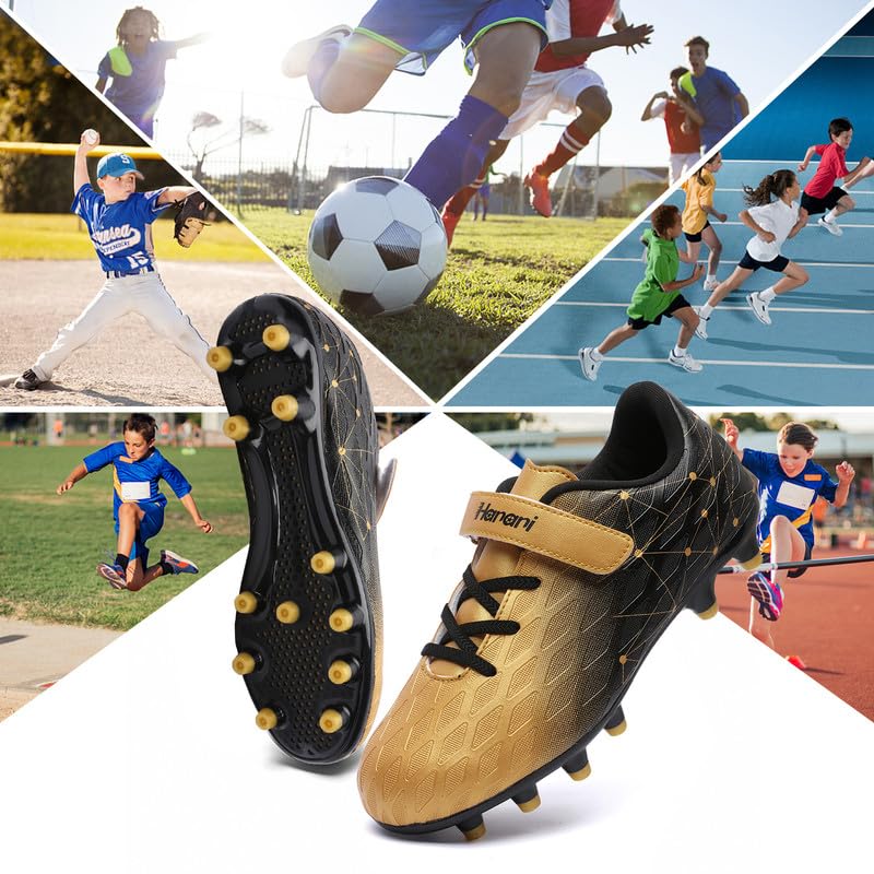 Hanani Kids Soccer Cleats Boys Girls Football Shoes Youth Athletic Outdoor & Indoor Baseball Shoe Firm Ground Cleat Comfortable Flexible Sneaker Unisex Child Black Gold