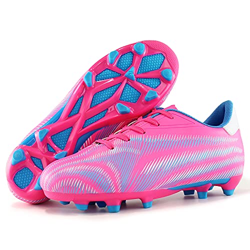 Hawkwell Boys Girls Athletic Outdoor Soccer Cleats Soccer Shoes(Toddler/Little Kid/Big Kid),Pink PU,3 M US