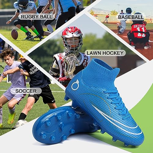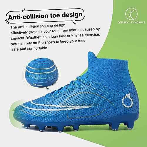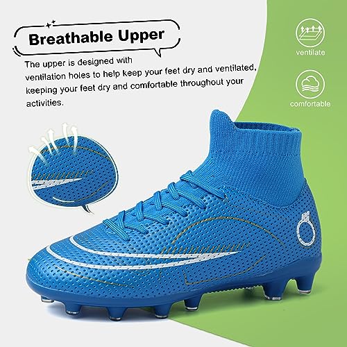 Kids Soccer Cleats Boys Girls Football Cleats Outdoor Soccer Shoes Tacos de Futbol para Hombre High Top Zapatos de Futbol para Hombres Baseball Cleats Professional Turf Football Boots Blue