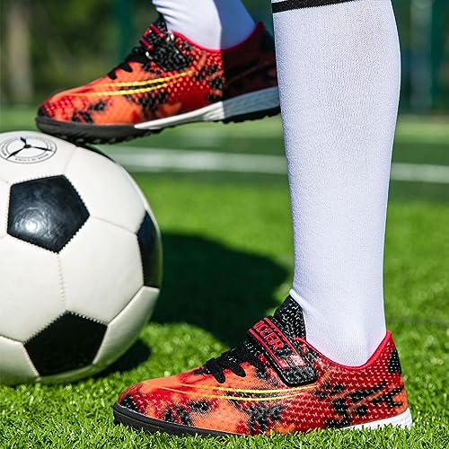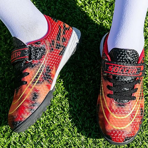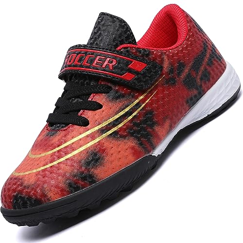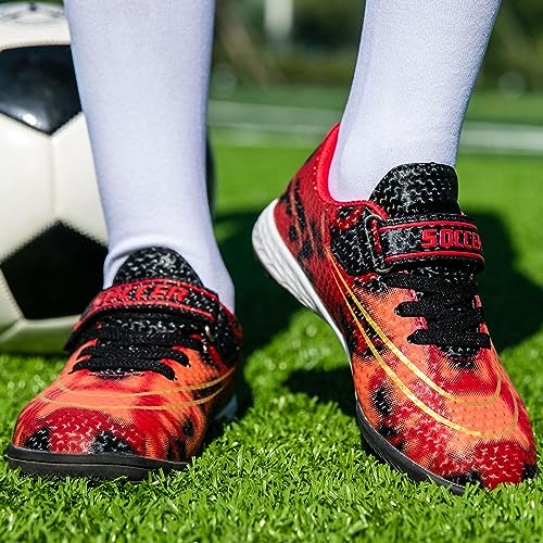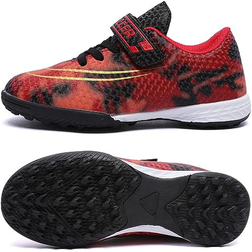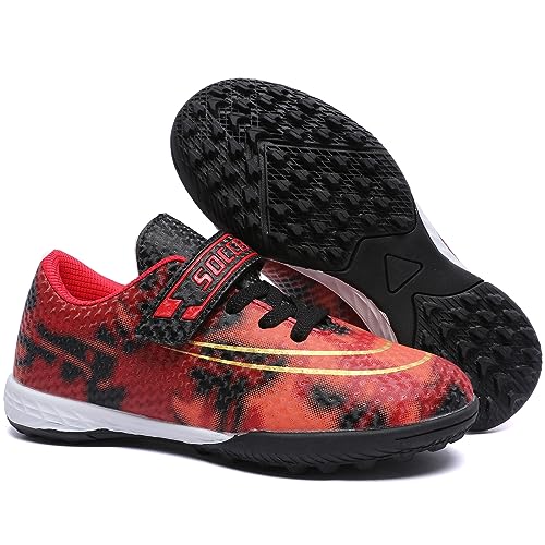 YASOWIN Kids Turf Soccer Shoes Boys Girls Youth Football Shoes Athletic Outdoor/Indoor Soccer Shoes Cleats (Toddler/Little Kid/Big Kid) Black/Red