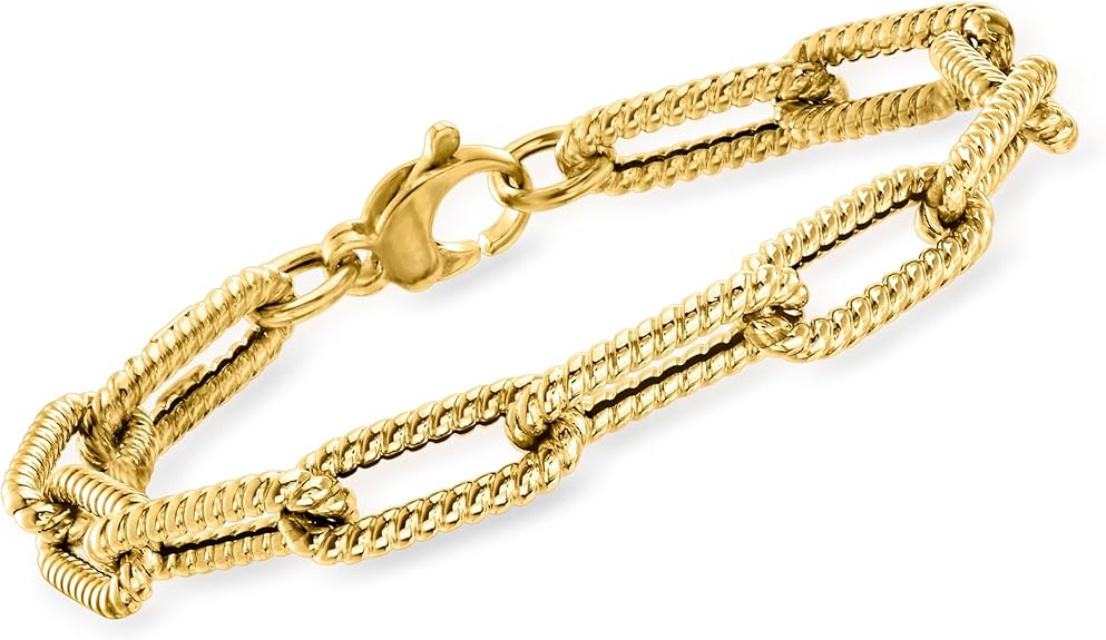 Ross-Simons Italian 14kt Yellow Gold Textured Paper Clip Link Bracelet
