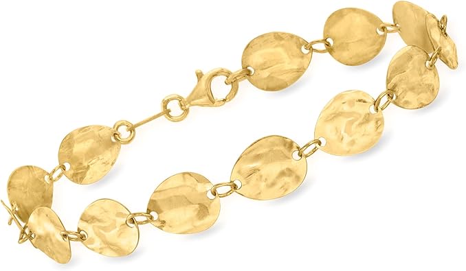 Ross-Simons Italian 18kt Gold Over Sterling Hammered and Polished Disc Bracelet. 7 inches
