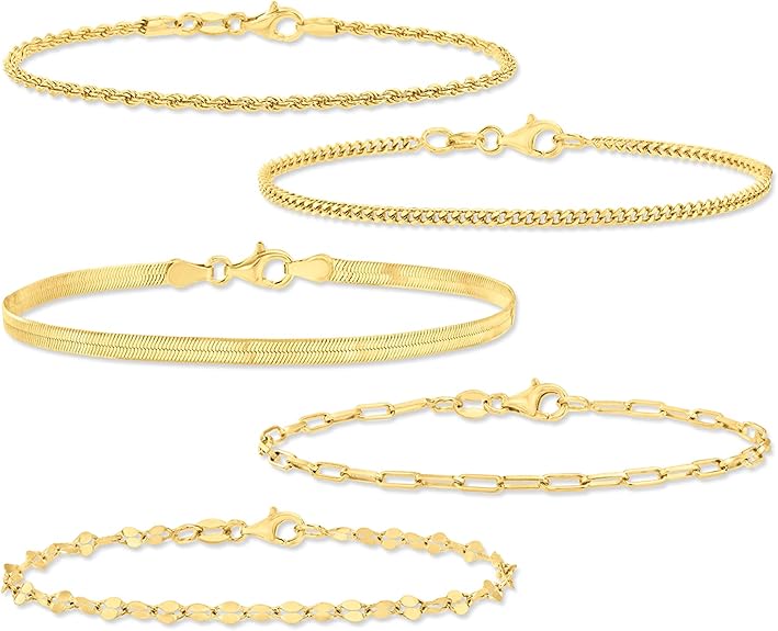 Ross-Simons Italian 18kt Gold Over Sterling Jewelry Set: 5 Chain Bracelets. 8 inches