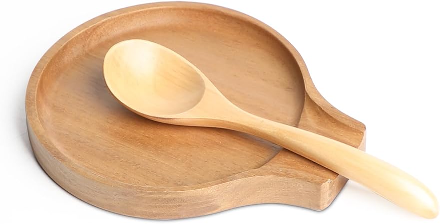 Acacia Wood Spoon Rest For Stove Top- Smooth Round Wooden Spoon Holder For Kitchen Counter with Non Slip Silicone Feet, Perfect Holder For Spoons, Spatulas and Tongs (Brown)