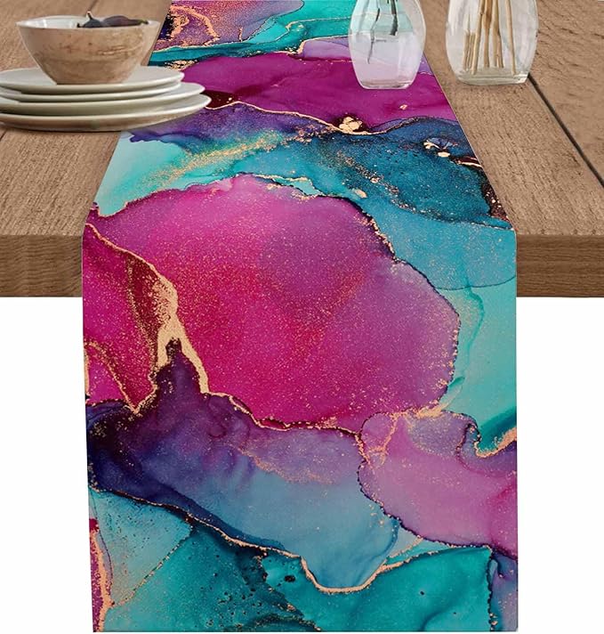 Coffee Table Runner Dresser Scarves, Dazzling Marble Gold Trim Texture Dining Table Runners, Washable Non-Slip Rectangle Table Setting Decor for Farmhouse Kitchen Party Holiday, 18x72 inch Long