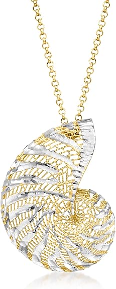 Ross-Simons Italian 18kt Gold Over Sterling and Sterling Silver Seashell Necklace. 18 inches