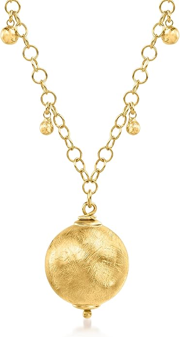 Ross-Simons Italian 18kt Gold Over Sterling Brushed and Polished Bead Station Necklace. 18 inches