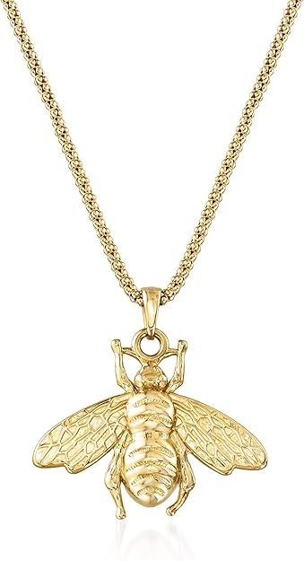 Ross-Simons Italian 18kt Gold Over Sterling Bumblebee Pendant Necklace. 18 inches