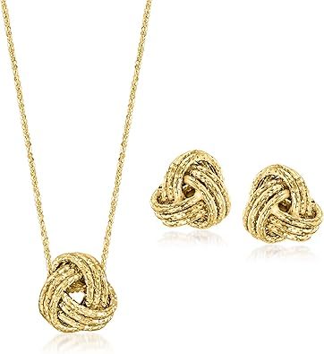 Ross-Simons Italian 14kt Yellow Gold Love Knot Jewelry Set: Necklace and Stud Earrings